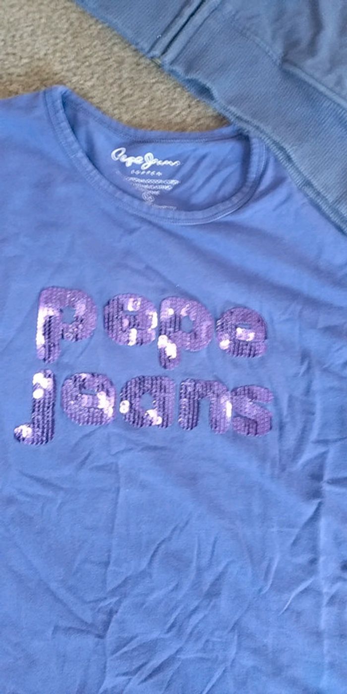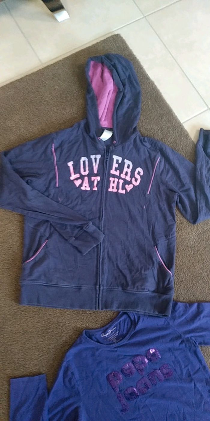 lot gilet+ t shirt - un t shirt manches longues pepe jeans violet strass - un gilet capuche violet rose domyos Nickel pas trou pas tâches maison non fumeur et sans animaux n'hésitez pas à faire des lots
