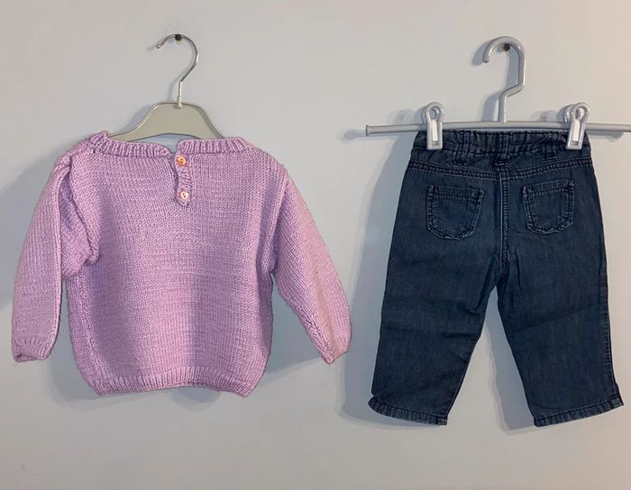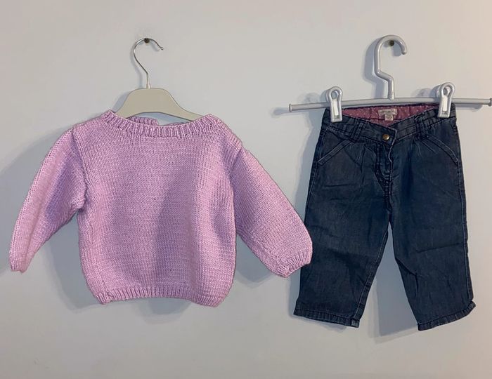 Ensemble 2 pièces : Taille 12 mois Magnifique Pull et Pantalon assortie Marque Grain de Blé Très bon état - portée 1 fois 6€ le lot Pleins d'autres annonces 12 mois Fille été/hiver en cliquant sur ce lien : #dressingcindydouzemois Lot possible pour économiser sur les frais de ports.