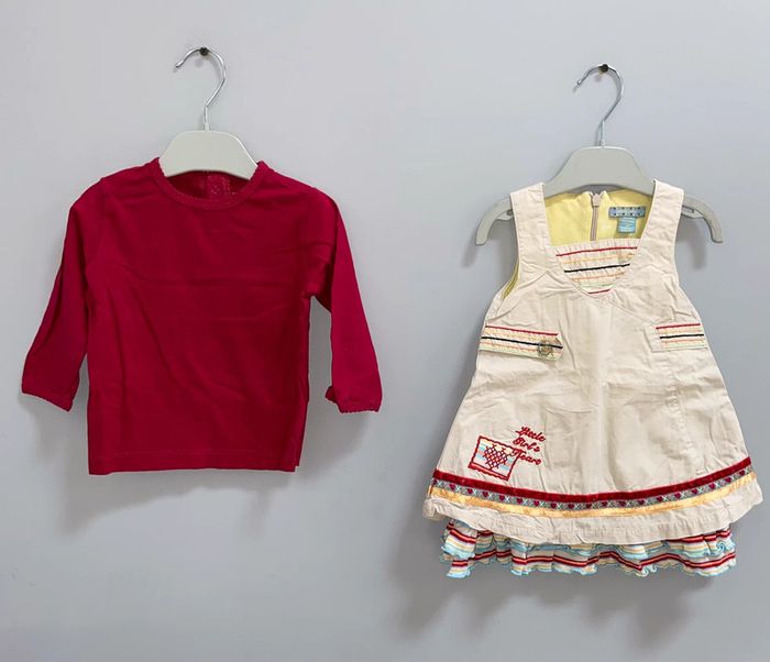 Magnifique Robe & Tee-shirts Marque Kitchoun Orchestra Taille 12 mois Très bon état - portée 1 fois 6€ le lot Pleins d'autres annonces 12 mois Fille été/hiver en cliquant sur ce lien : #dressingcindydouzemois Lot possible pour économiser sur les frais de ports.