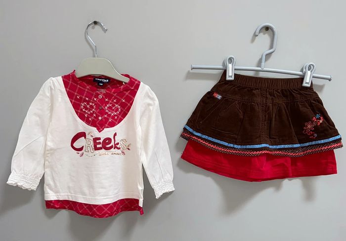 Ensemble 2 pièces : - Tee-Shirt Manche Longue Taille 18 mois Marque Creeks Très bon état - porté 1 fois - Magnifique Jupe Taille 18 mois Marque La Compagnie des Petits Très bon état - porté 1 fois 10€ le lot Pleins d'autres annonces en 18 mois été/hiver en cliquant sur ce lien : #dressingcindydixhuitmois Lot possible pour économiser sur les frais de ports.