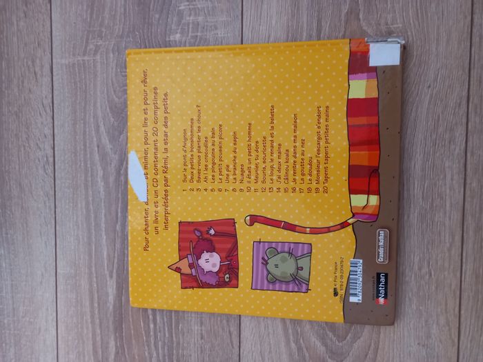 COMPTINES ET JEUX DE DOIGTS // LIVRE EN BON ETAT (je ne possède plus le CD)(tranche écorchée,étiquette première et dernière page // Illustrations Couleur RESUME : Pour chanter et accompagner Rémi en famille, un livre qui rassemble des chansons traditionnelles et des chansons inédites, dont la moitié à mimer. Ces dernières sont illustrées par des photos pour expliquer les jeux de doigts. Livre avec impression holographique sur la couverture