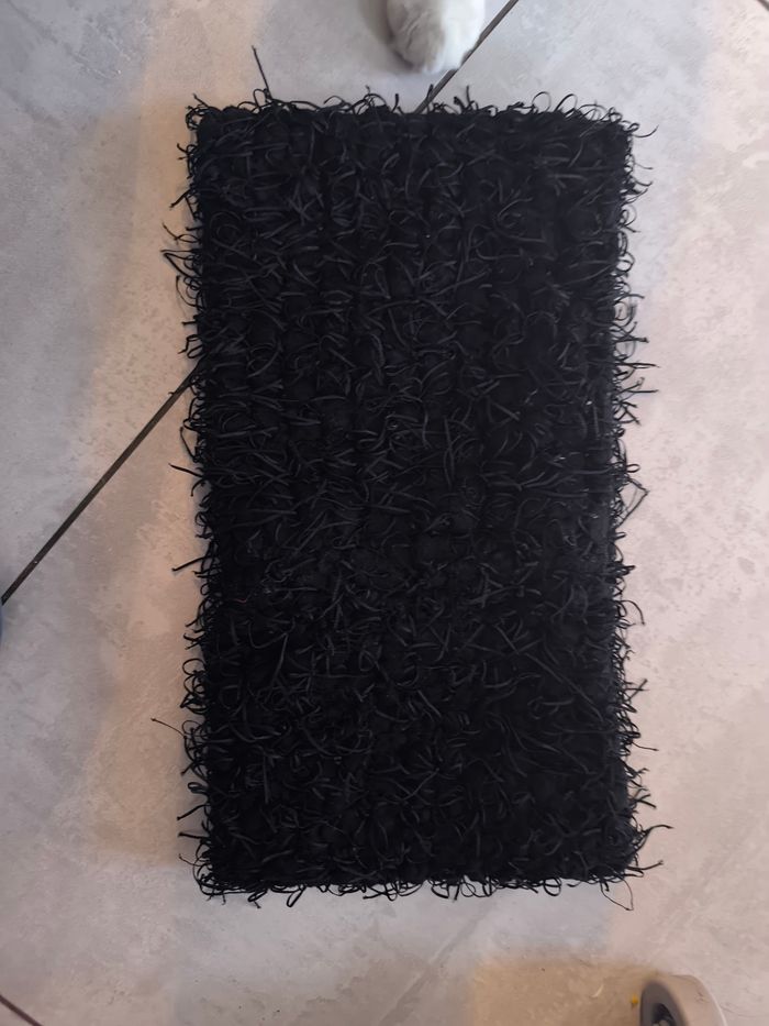 Aucune étiquette présente je ne connais ni la marque ni la matière. Couleur:Noir Etat: Très bon état peu