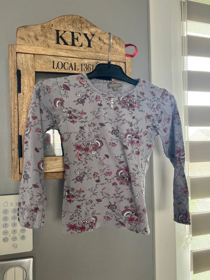 Tee shirt longue manche violet avec des fleurs - photo numéro 2