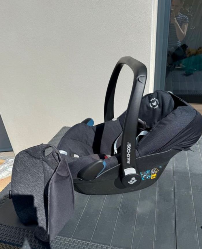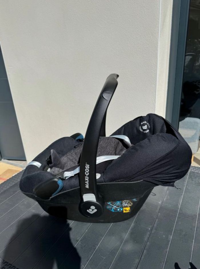 Cosy PEBBLE pro jamais utilisé, Coloris noir, fournis avec l’équipement naissance, Capote en tissus