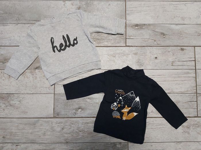 Lot kiabi 1 pull et 1 sous pull Taille 6 mois Très bon état Plus d'étiquettes,elles ont été coupées