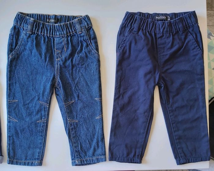 1 jean Et 1 pantalon de sortie Taille 74 cm Très bon état Plus d'étiquettes,elles ont été coupées