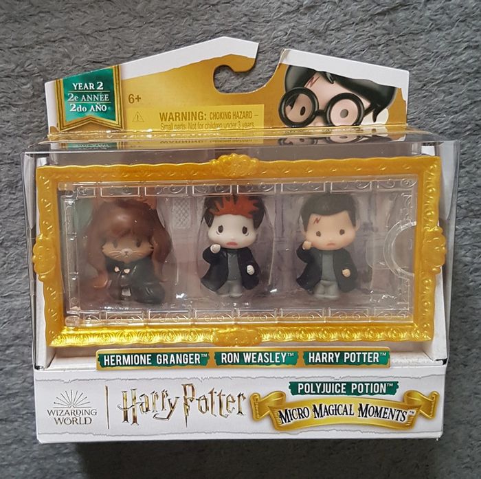 Coffret de figurines Harry Potter Micro Magical Moments 2è année Coffret neuf Contenu : 1 écrin, 3 supports, 3 figurines, 1 guide collection Hermione Granger, Ron Weasley et Harry Potter polyjuice potion Neuf en boite New sealed in box