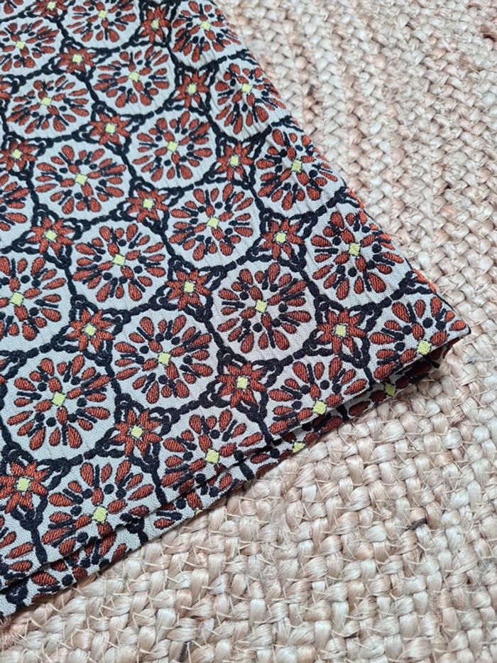 Mini jupe en polyester doublée neuve fond gris motif rouille et jaune Fermetures par zip arrière Taille 38 #laetab38