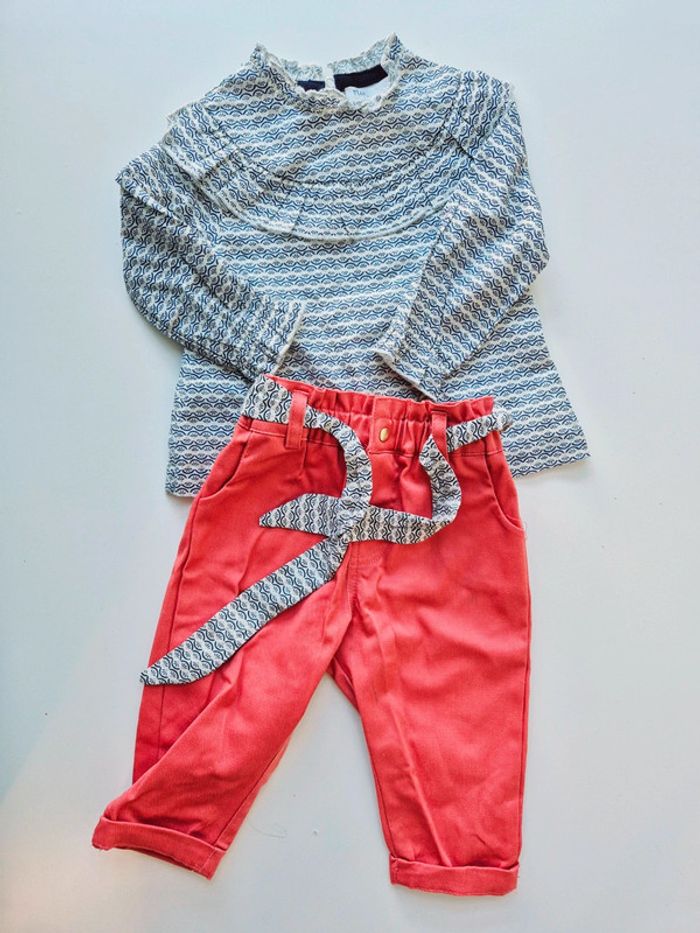 🧵 Matière : 65% coton, 30% polyester , 5% élasthanne 🍁☃️ Saison : Automne/Hiver 💰 Prix neuf estimé: €25 🛒 Marque : Mes petits cailloux 📏 Taille : 68 cm /6 mois 🔖 Référence : F_06M_EN_1 #6moisfilleTropMimi Blouse chemise doublé Pantalon ceinture élastique Ceinture amovible