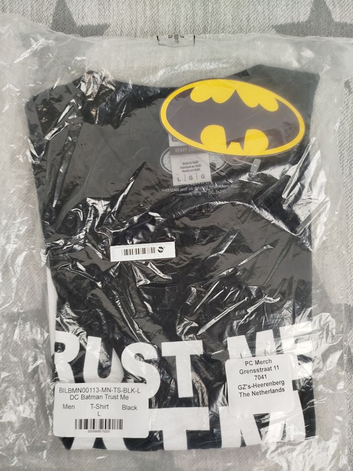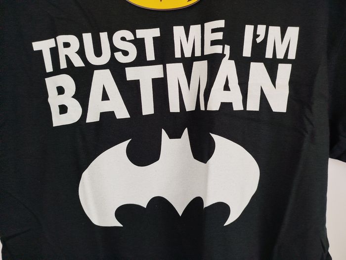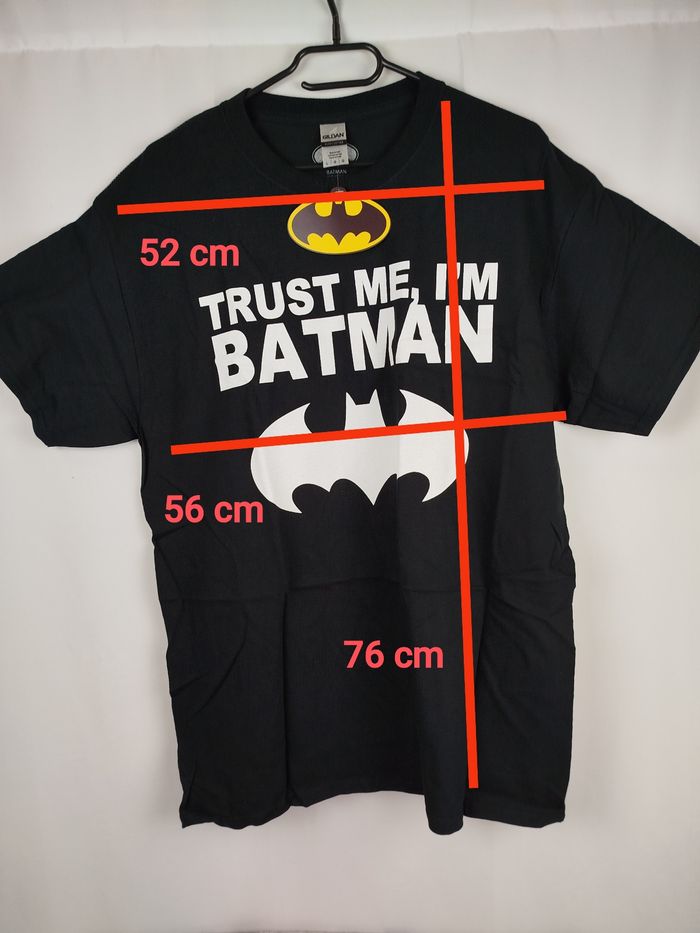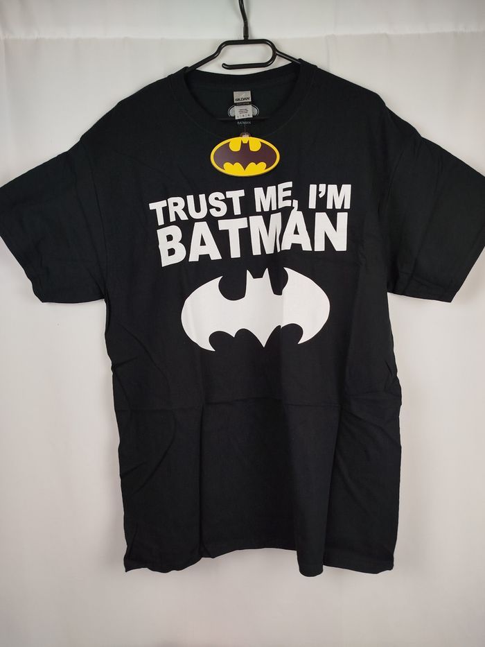 Envoi rapide ✈️ et soigné 🫧 Pour les lots contactez moi 🛍️ Tout est négociable 💰 Je réponds rapidement 📨 Pensez à visiter mon dressing T-shirt homme manches courtes Batman DC comics de la marque gildan Trust Me et logo 100% coton Taille L Jamais porté avec étiquette et emballage d'origine