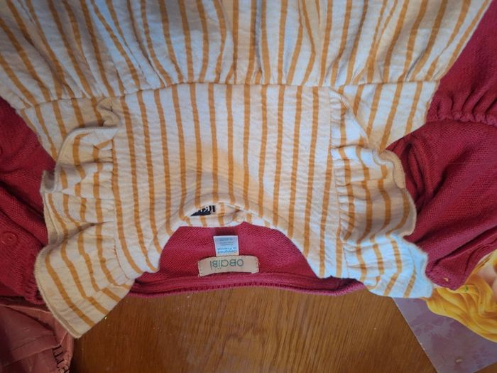 Ensemble petite robe sans manche très bon état bouton derrière rayure moutarde vertical froufrou manche Pull rose bon etat #zaceci28e6mois