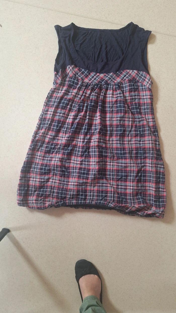 A carreaux cadriage rouge bleu foncé. Sans manche enfin type debardeur bouffante Doublure abîmé mais pas troué # zaceci2844