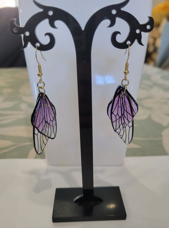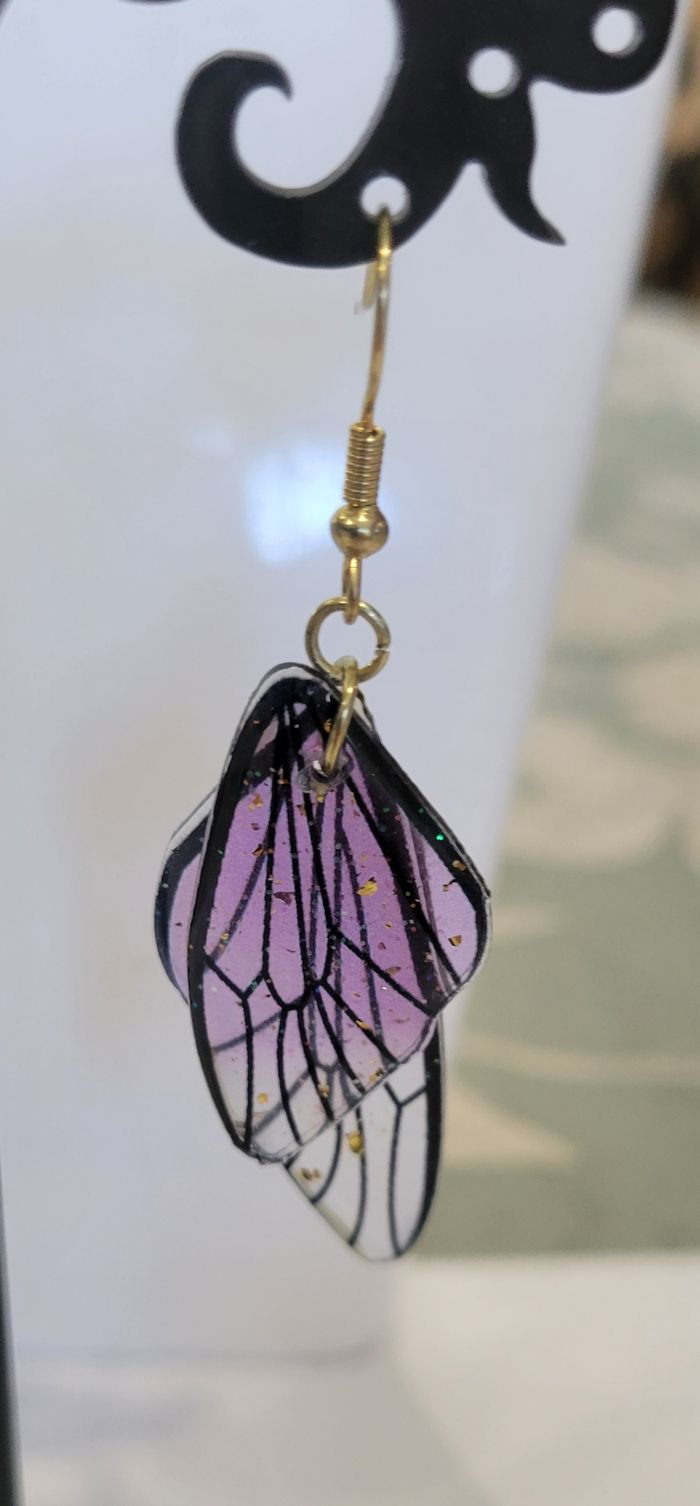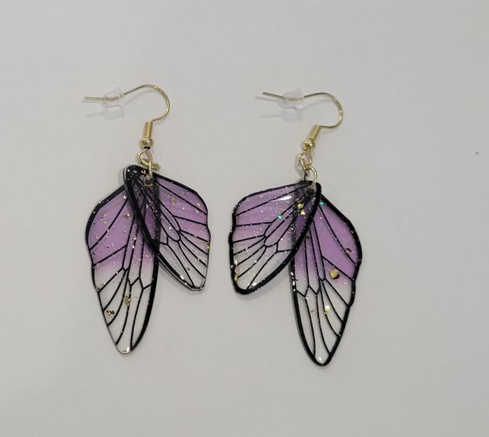 BOUCLES D'OREILLES AILES FEE PAPILLON LIBELLULE DEGRADE DE VIOLET ! NEUF ! - photo numéro 1