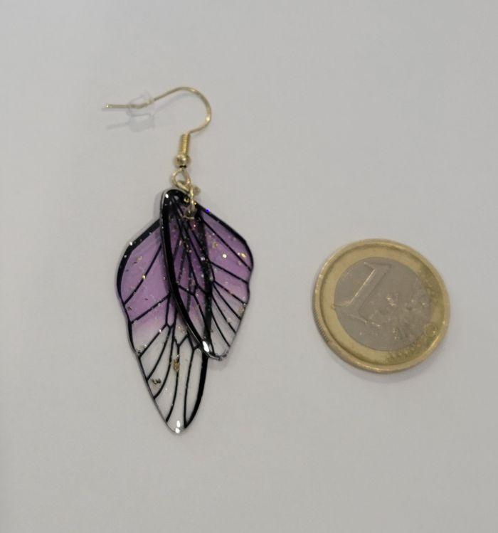BOUCLES D'OREILLES AILES FEE PAPILLON LIBELLULE DEGRADE DE VIOLET ! NEUF ! - photo numéro 4