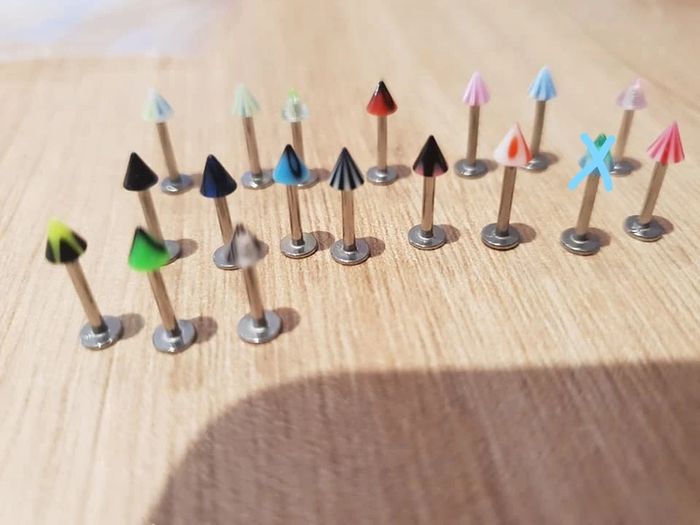 piercing labret pointu 1€ pièce pour les frais de port me contacter possibilité d'envoyer plusieurs en même temps