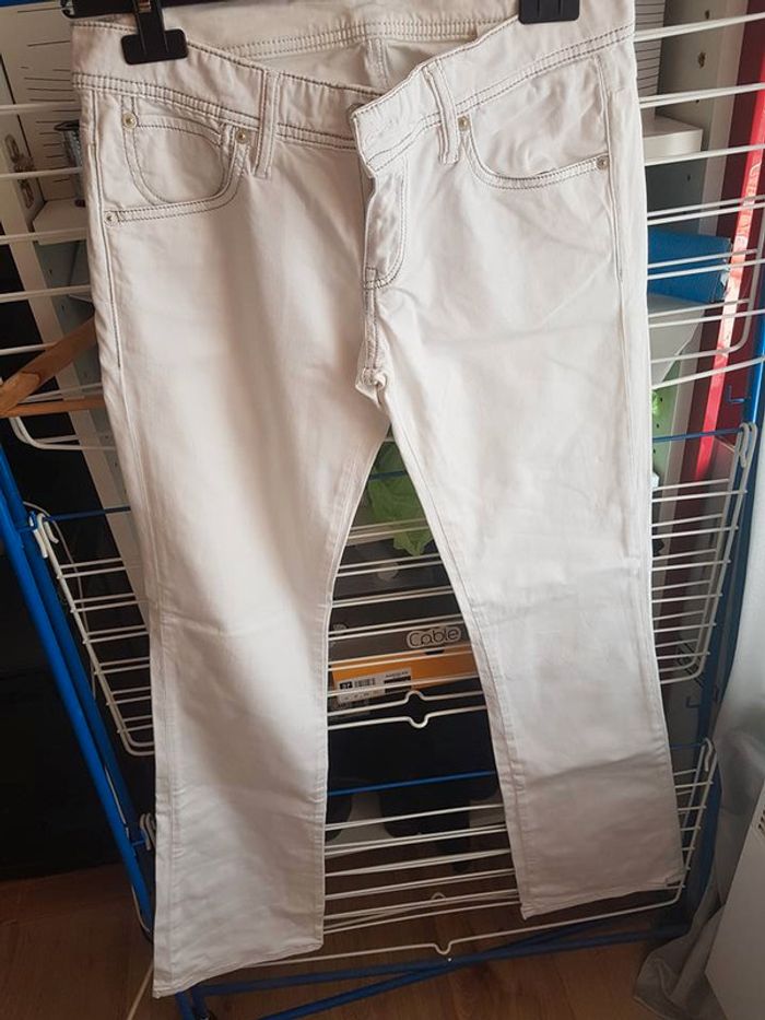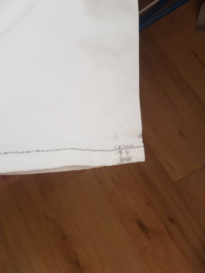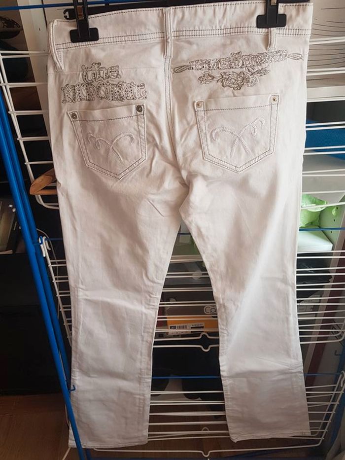 Pantalon blanc Kaporal taille 41 présente 2 marques sur le bas voir photo et une marque jaune au niveau du genoux mais peut très bien être teint et il sera comme neuf