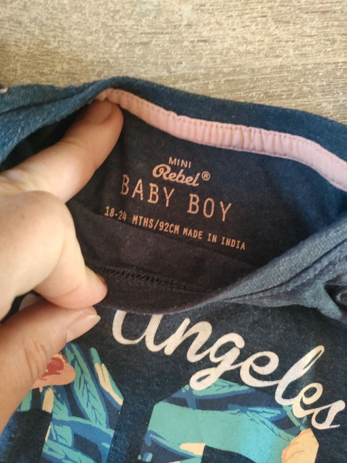 Ensemble été composé d'un short de la marque Tex 23 mois et d'un t-shirt mini rebelle 18-24 mois en parfait état