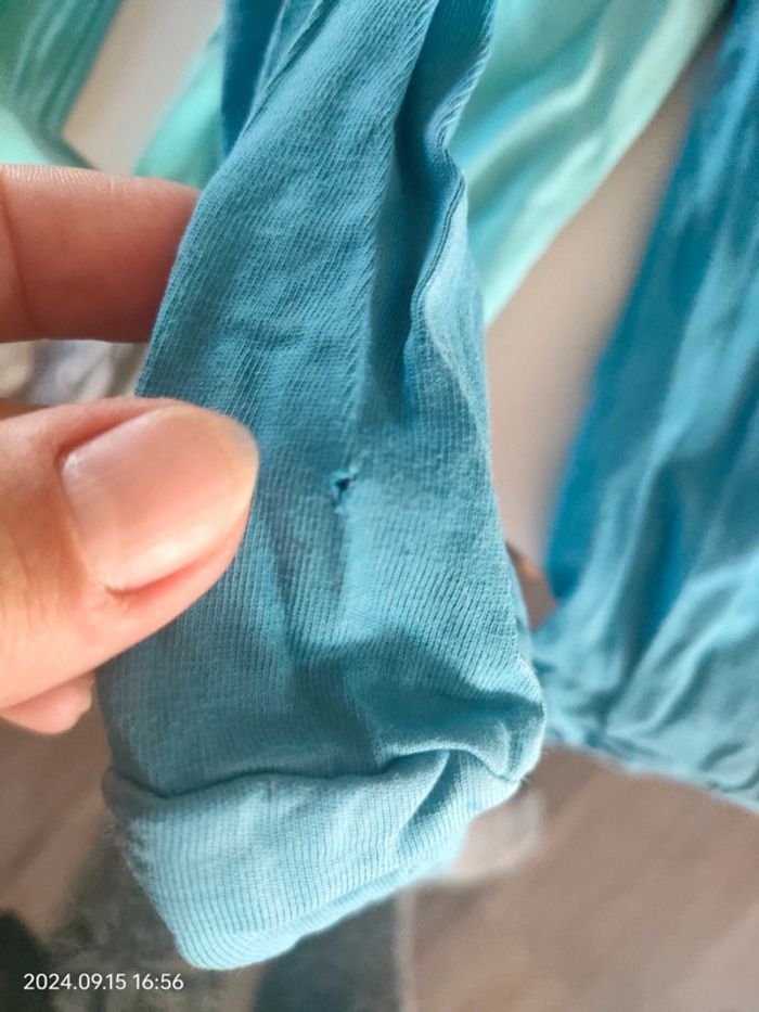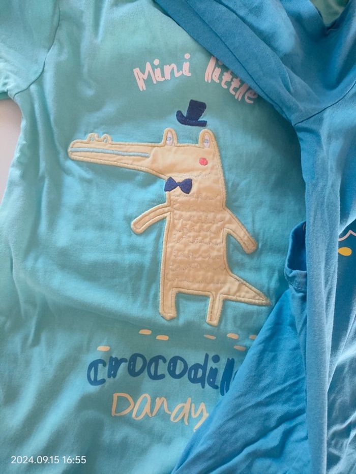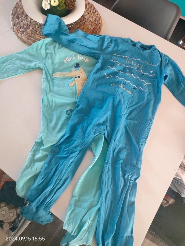 Lot de 2 pyjamas une pièce de la marque Kiabi attention un micro trou sur le bleu foncé voir photos sinon en parfait état pression OK taille 36 mois