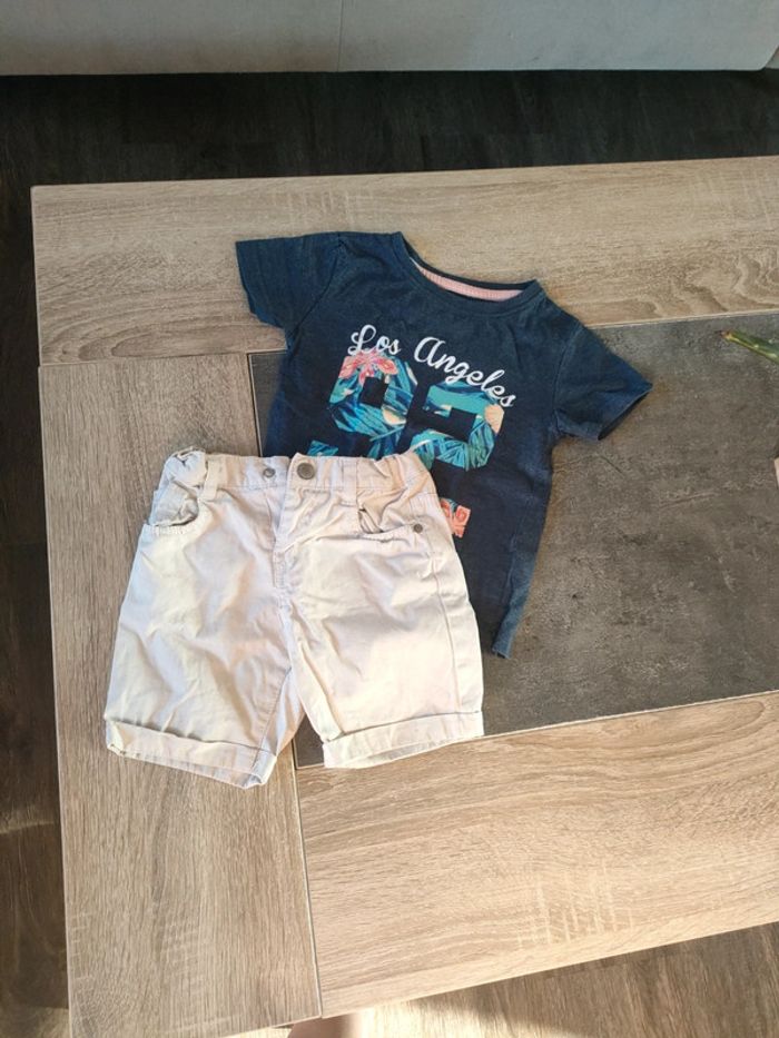 Ensemble été composé d'un short de la marque Tex 23 mois et d'un t-shirt mini rebelle 18-24 mois en parfait état
