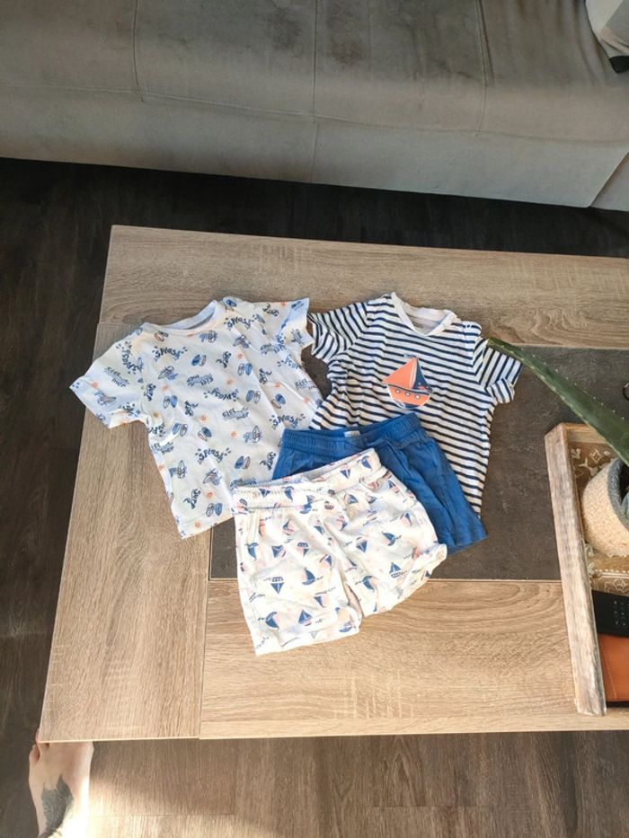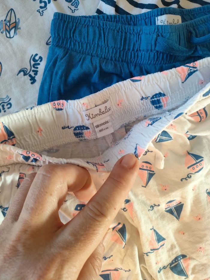 À vendre lot d'ensemble été de la marque kimbaloo en parfait état 18 mois, deux t-shirt deux petits shorts