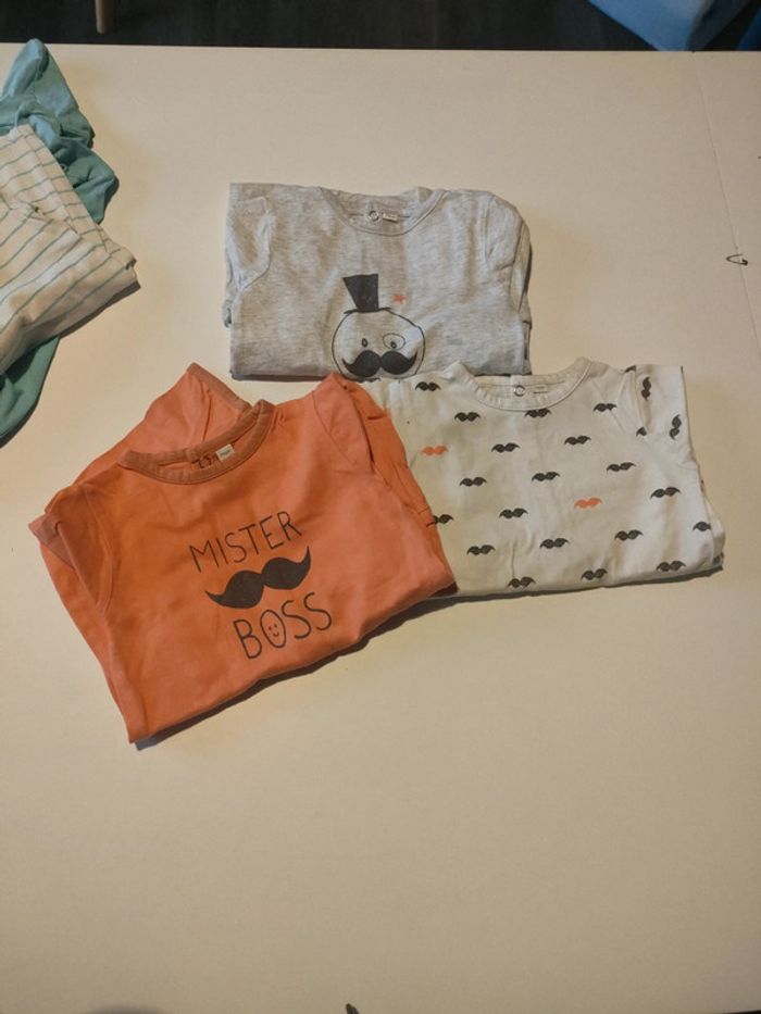 L'eau de 3 pyjama taille 12 mois de chez Kiabi état satisfaisant abîmé au niveau des pressions à l'arrière voir photos d'où le prix mais peut encore servir