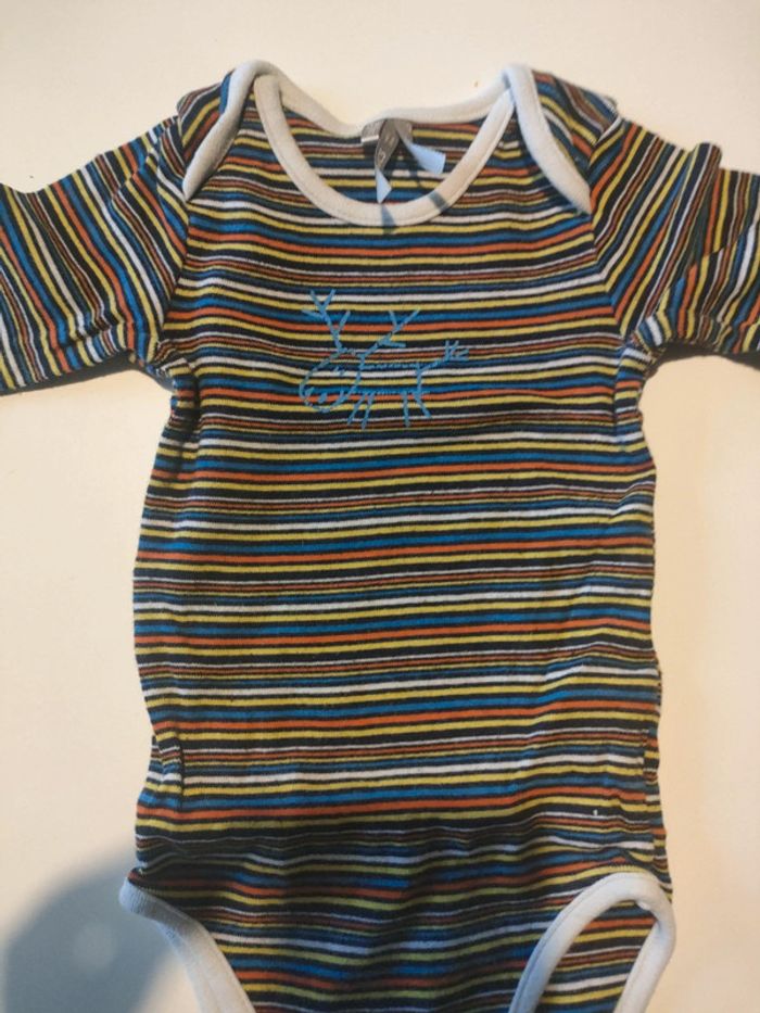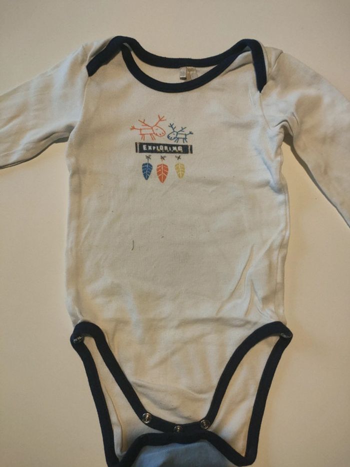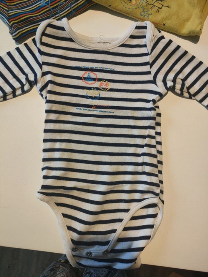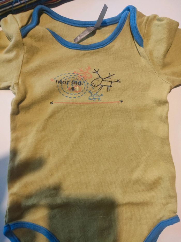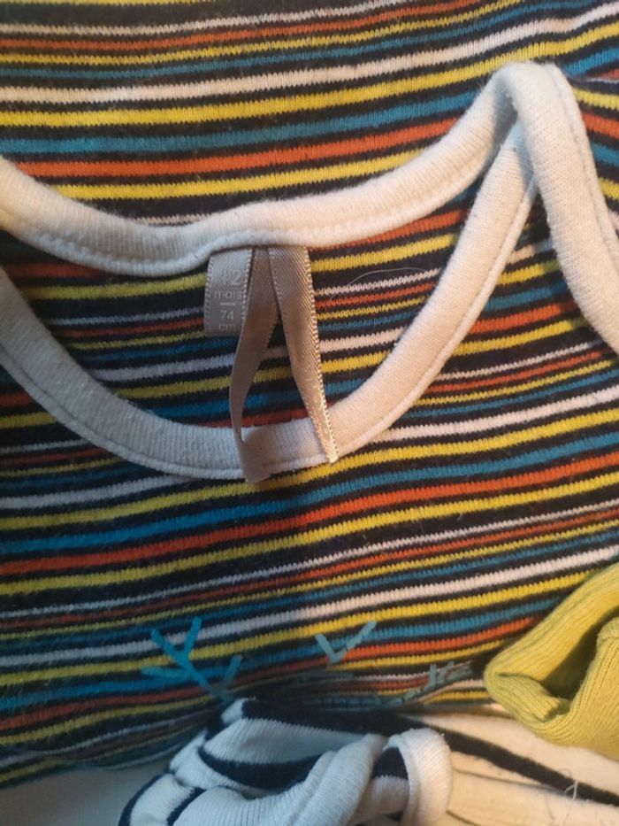 Collection de body de chez Orchestra comprenant 5 pièces en très bon état, les pressions n'ont aucun défaut, juste une tâche sur l'un voir dernière photo, taille 12 mois