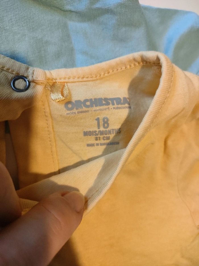 Lot de deux pyjamas Orchestra 18 mois en coton très bon état hormis une petite tache sur le bleu. Pression ok