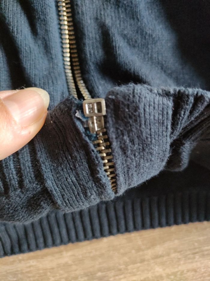 Gilet bleu marine en bon état attention la fermeture est assez difficile à fermer peut-être bientôt bonne à changer
