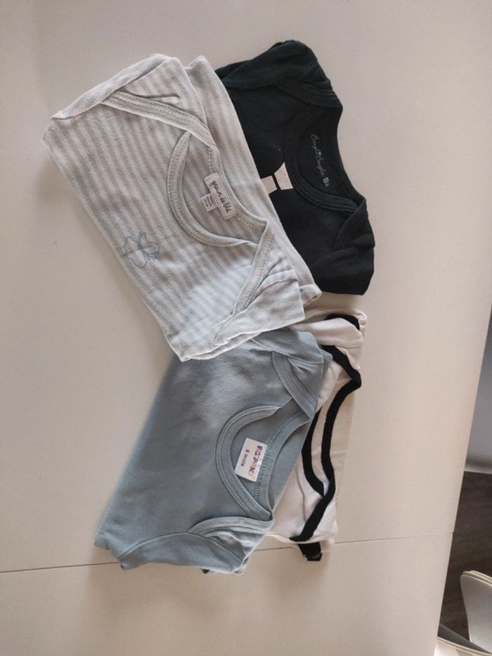Lot de 4 bodies différentes marques en très bon état légère tâche jaunies sur les bodies blanc voir photos. 9 mois
