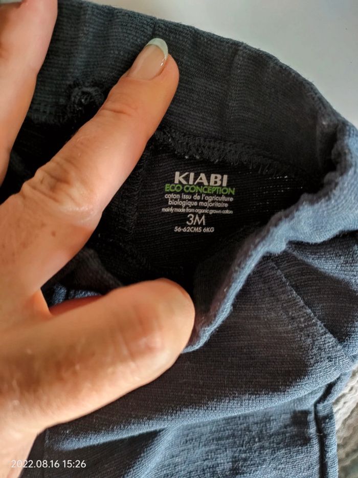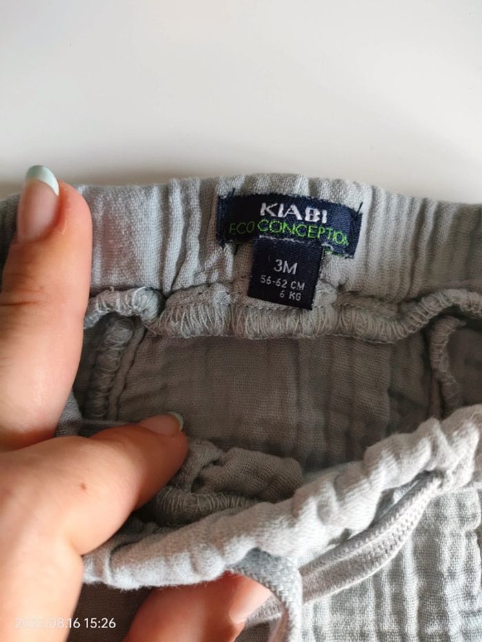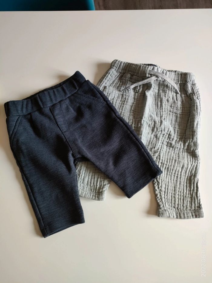 Lot de 2 pantalon bébé 3 mois dont un en gaz de coton, super confortable en très bon état. Marque kiabi
