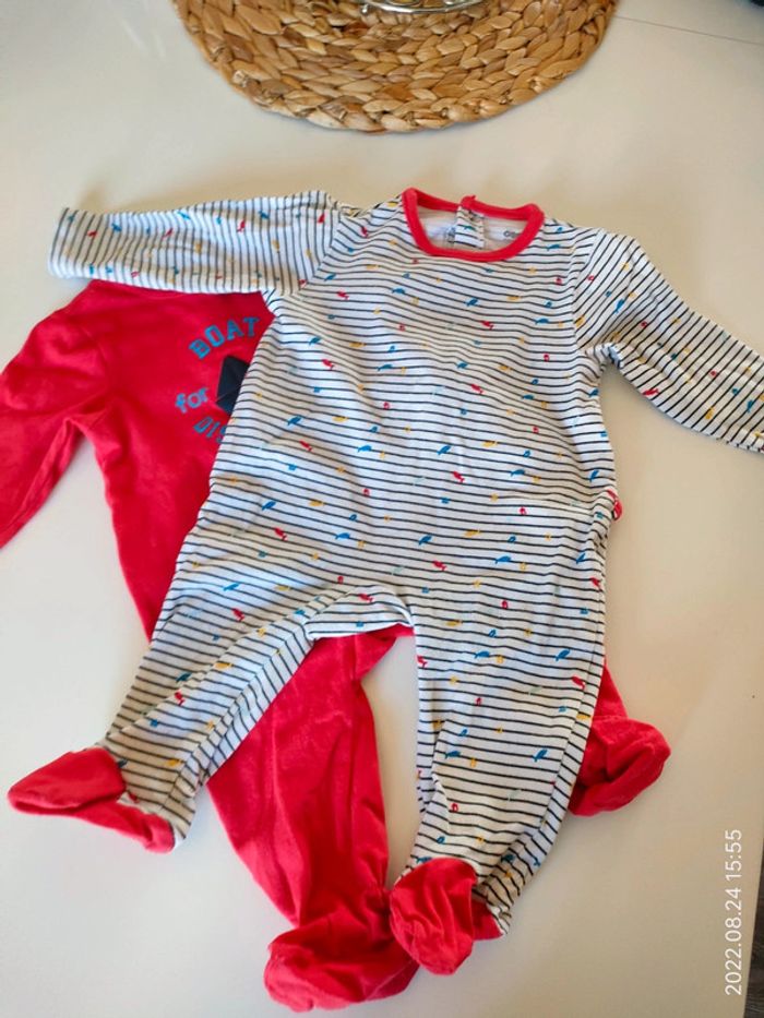 Lot de deux pyjama fin 3 mois marque Orchestra en parfait état. Ouverture derrière.