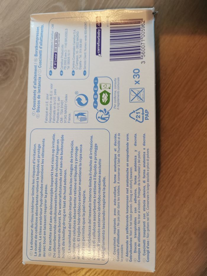 Je vend une boite neuve (jamais ouverte) de coussinbs d'allaitement carrefour baby.