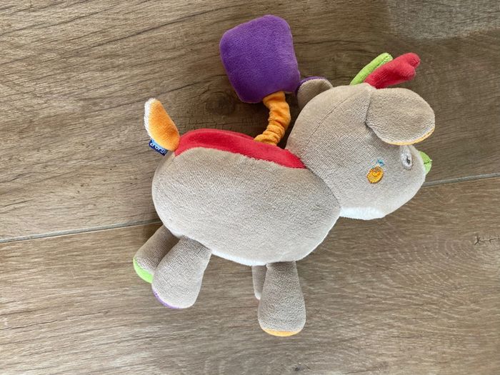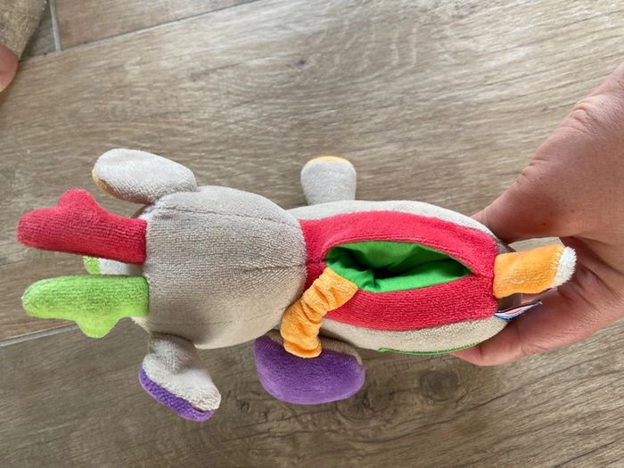 doudou peluche cerf renne élan + hibou gris rouge vert SUCRE d'ORGE 21cm - photo numéro 4