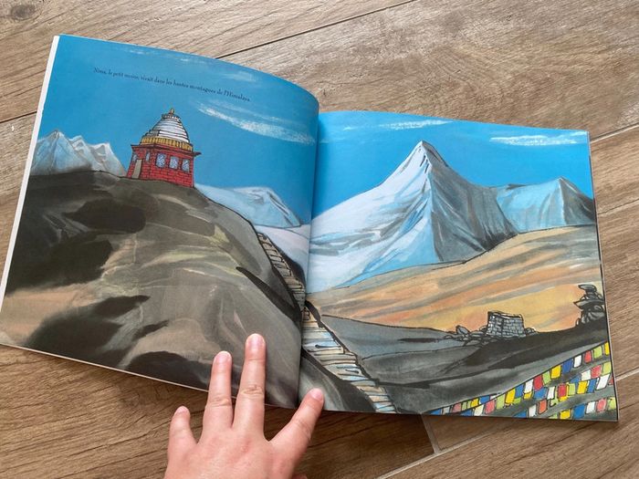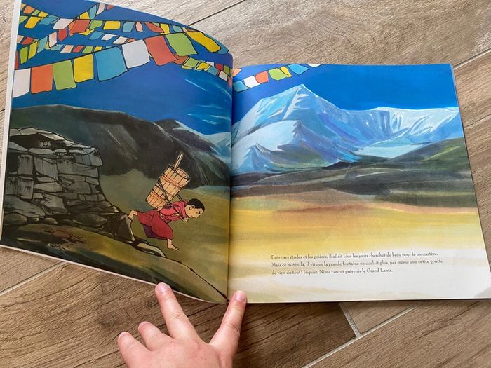 Livre nima et l’ogresse pierre Bertrand chen jiang hong TBE École des loisirs 6 - 8 ans 40 pages Dans le monastère de l'Himalaya où vit Nima, c'est la catastrophe. La grande fontaine, seul point d'eau des moines, est à sec ! Que faire ? Le Grand Lama lui confie une mission. Avec Jumpa le yack, il doit se rendre à la source de la Roche Percée et y remplir les outres. Nima se met en route, muni des bénédictions de son supérieur, et d'une parole du Bouddha : "Celui qui est maître de lui-même est plus grand que celui est maître du monde".