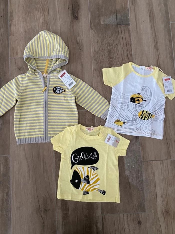 Ensemble DPAM du pareil au même 18 mois 80cm Gilet zippé à capuche neuf étiqueté 17,99€ T-shirt blanc neuf étiqueté 10,99€ T-shirt jaune neuf étiqueté 5,99€ Idéal cadeau naissance