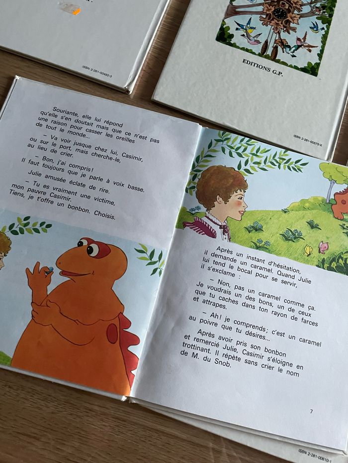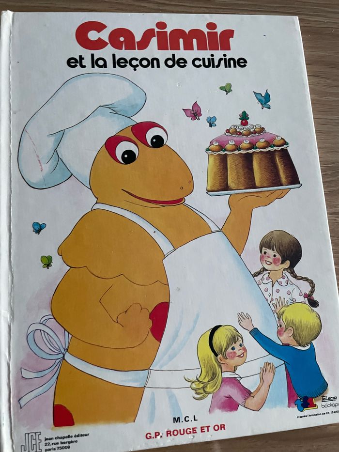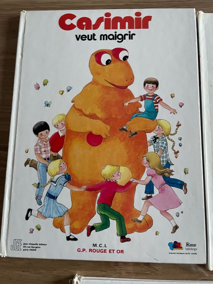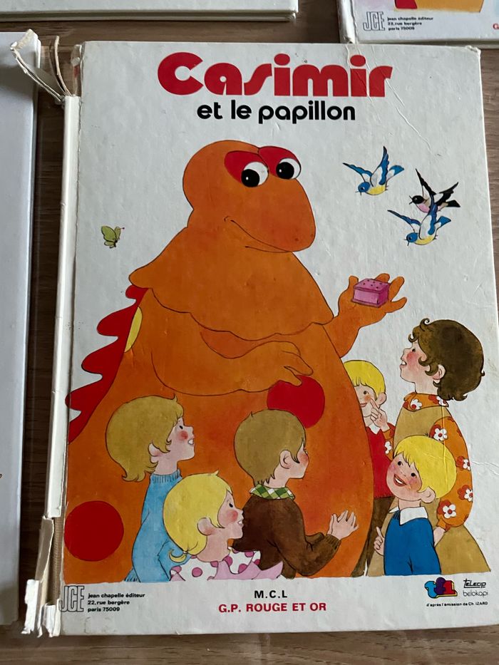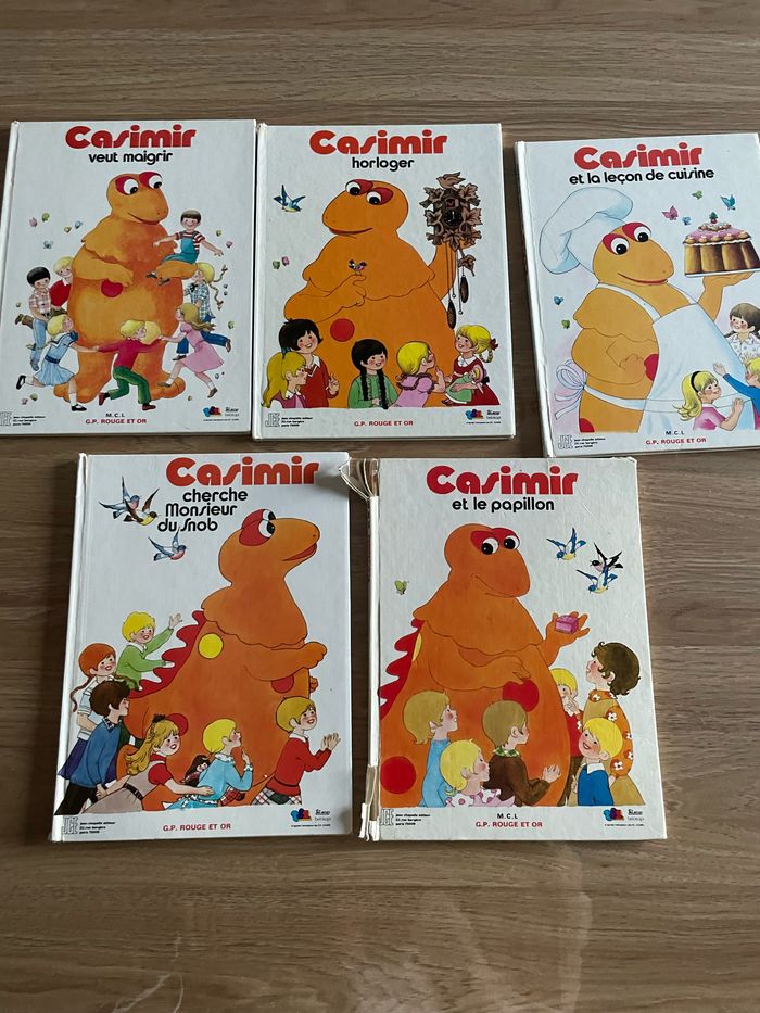 4 livres de Casimir : - Casimir et le papillon (1979) couverture très abîmée - Casimir et la leçon de cuisine (1978) - Casimir horloger (1979) - Casimir veut maigrir (1978) - Casimir cherche Monsieur du Snob (1979) Les livres présentent des traces d’usure et de vieillesse ( voir photos) Le lot :20 euros 6 euros l’unité