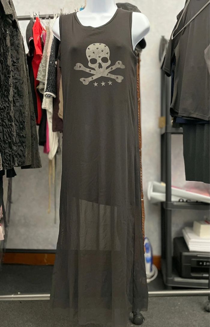 Robe noire en doublure mesh motif crâne ☠️ . Très bon état, style punk/gothique, taille S possible M. La matière est souple. Longueur totale : 114 cm #robelongue #longdress #blackdress ##gothicdress #gothdress #donna #y2k y2kdress #vintagedress #punkrock punk longblackdress mesh dress mesh femme winter automne autumn hiver streetwear Y2K streetwear