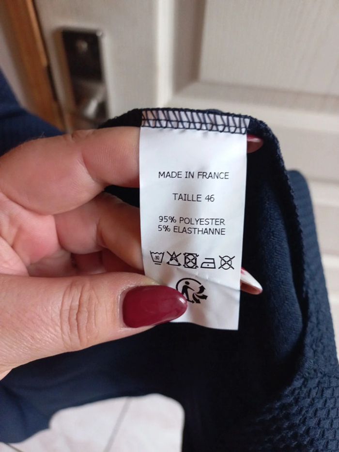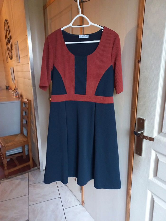 Robe bleue marine Taille 46 Manche courte La femme moderne Made in France Prix boutique 100€