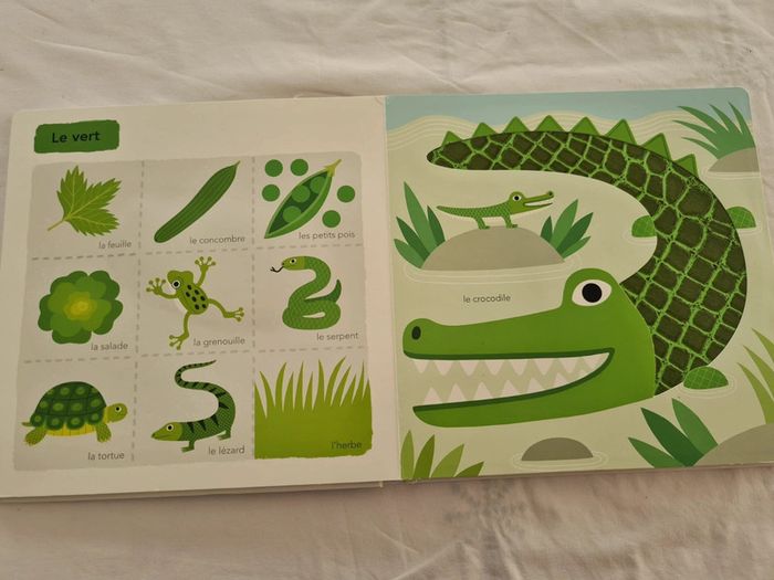 Avec plus de 20 matières à toucher et plus de 100 mots à apprendre, ce très grand imagier accompagne l'enfant dans la découverte des couleurs.