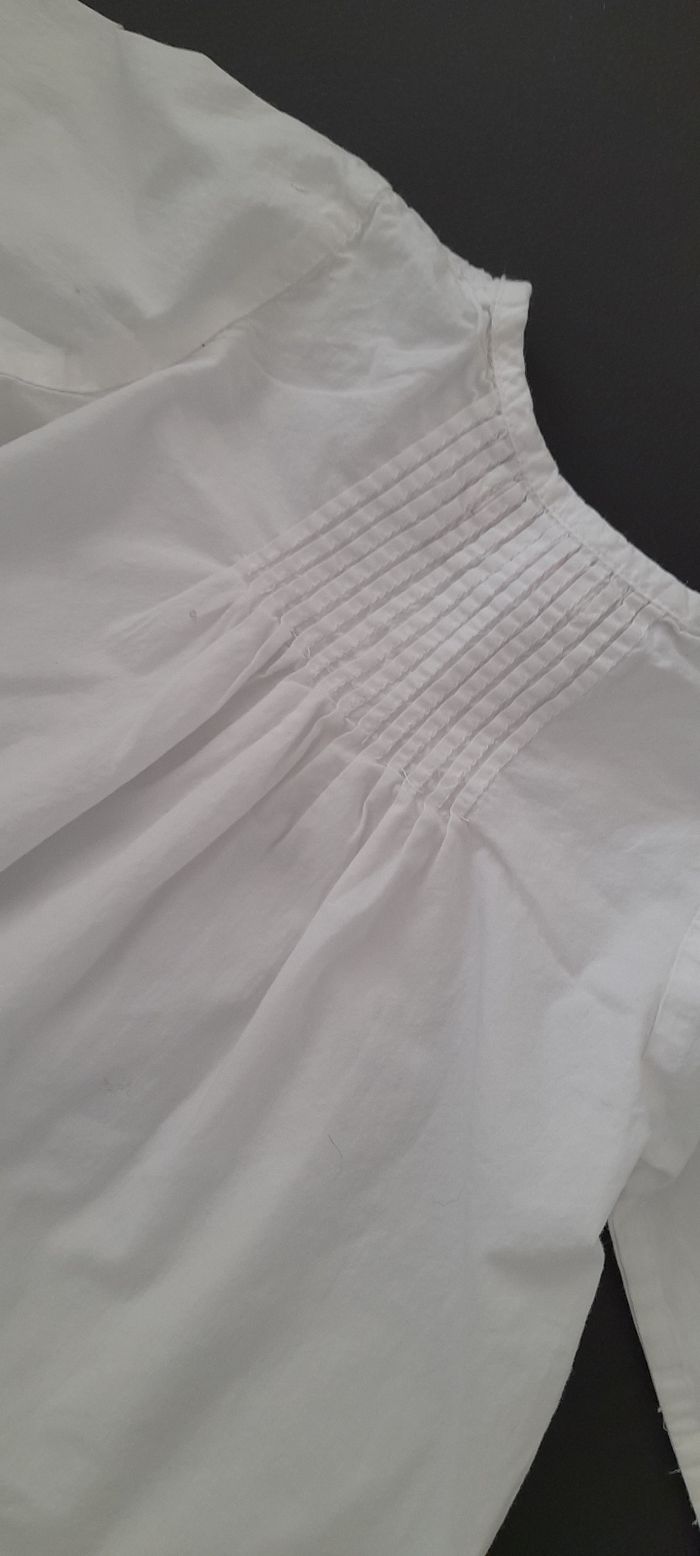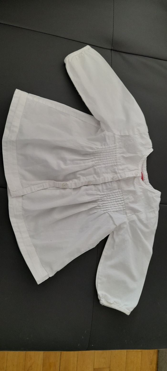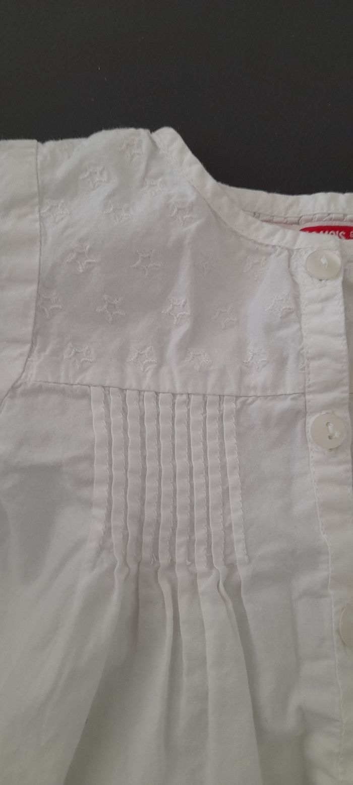 Robe T 6 mois Marque DP AM Couleur blanche Manches longues Attache boutons devant Broderie haut devant Fronces devant et arrière Très très bon état