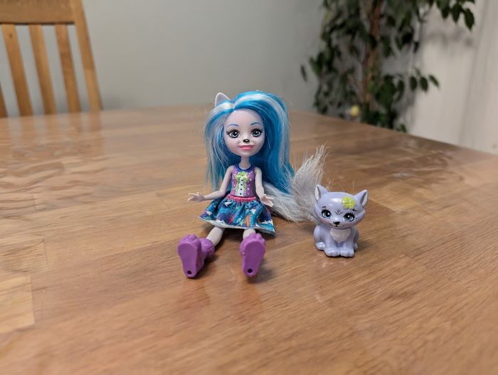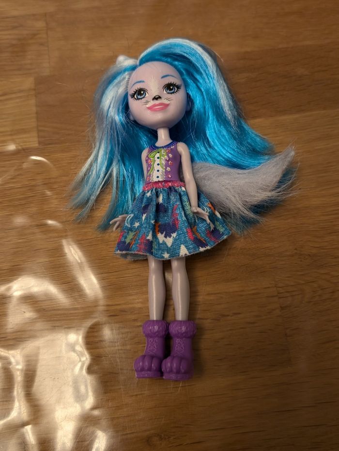 Poupée Winsley Wolf et son petit animal Enchantimals Très bon état, tel que sur les photos, un léger défaut sur le bout du nez de la poupée.