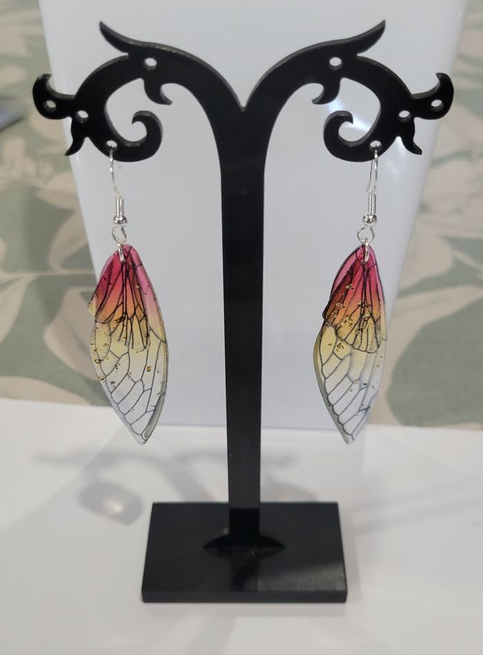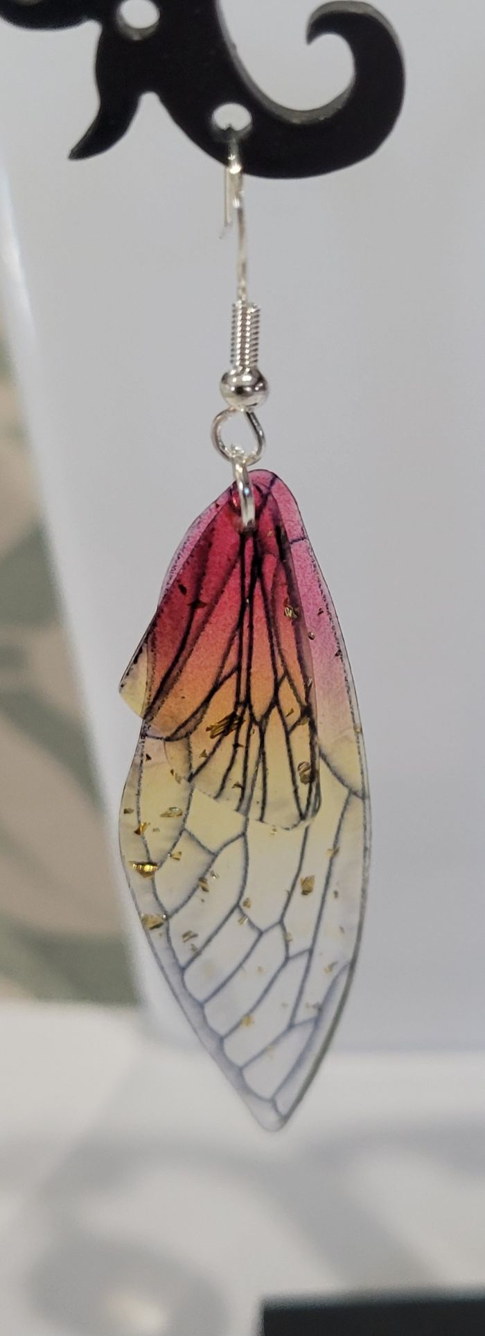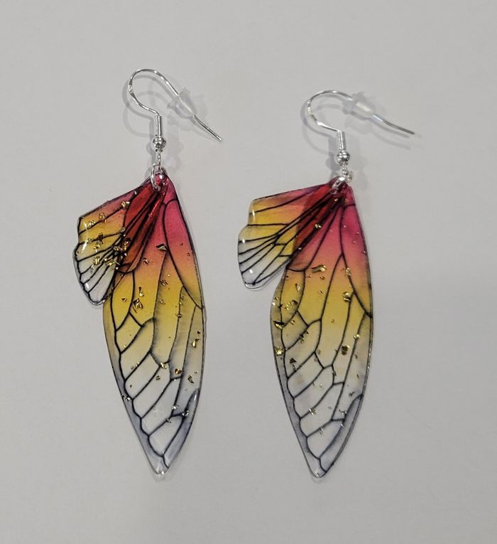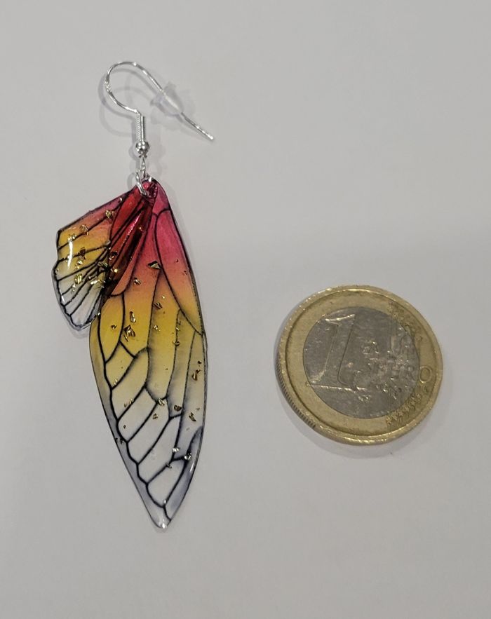 BOUCLES D'OREILLES AILES FEE PAPILLON LIBELLULE DEGRADE ROSE JAUNE ! NEUF ! - photo numéro 4