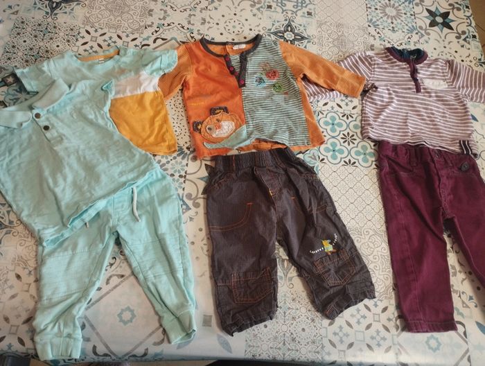 ⚠️ Possibilité de modifier le lot ou de prendre un ensemble à l'unité⚠️ Lot de 3 ensemble garçon 12 mois. Ils ont été portés mais restent en bon état. -Ensemble bleu ciel et orange à gauche marque Zeeman -ensemble marron orange bleu au centre marque carrefour -ensemble bordeaux et blanc a droite marque kimbaloo #audrey5947garcon12mois #lotensemblesgarcon12mois