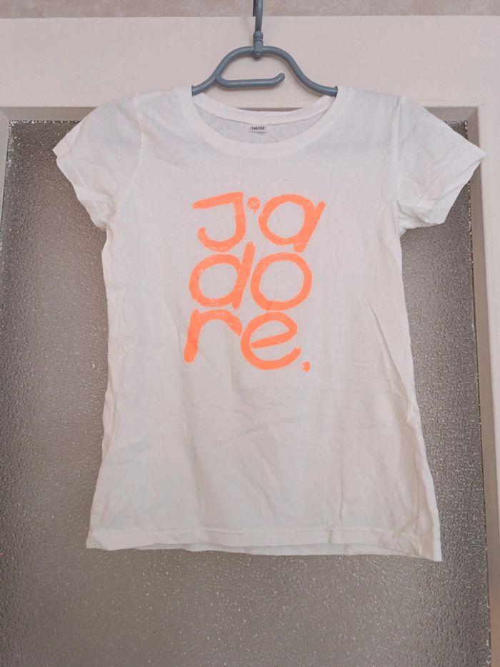 Tee shirt en 12 ans Très bon état Inscription orange fluo Juste une mini tâche vers le haut du col visible sur photo #nomawesap_12ans