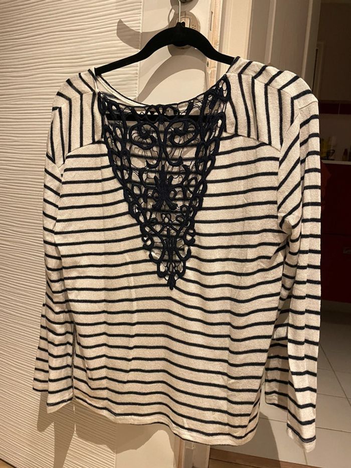 Pull marinière Le haut du dos est en crochet La matière du pull est très douce En très bon état Taille m