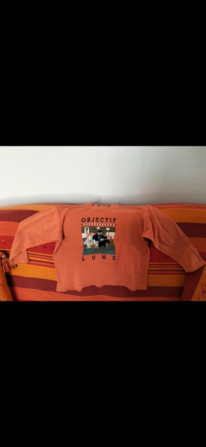 T-shirt manches longues avec petit col Orange Floriane collection Tintin Très bon état 6 ans