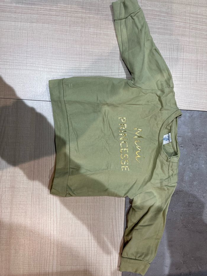 Pull vert manche longue avec pression sur l’épaule