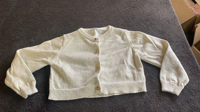 gilet beige avec reflets dorés et boutons dorés taille deux ans ( marqué 23 mois) très bon état jamais porté juste laver contiens encore sur l’étiquette le bouton de rechange #ggilloisrenon_fille_24mois code rangement 148