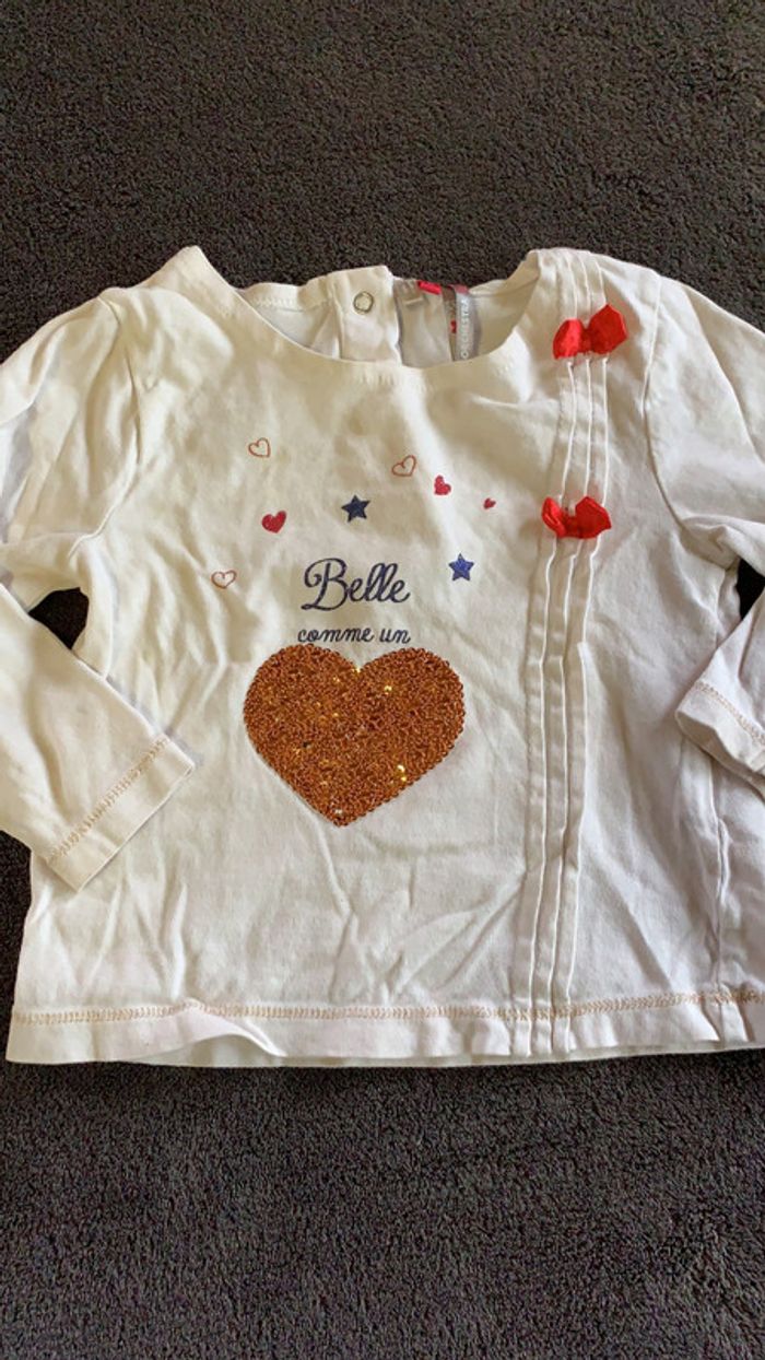 tee shirt blanc bon état une petite tache (voir photo) fermeture à pression derrière marche orchestra taille 18 mois. #ggilloisrenon_fille_18mois code rangement 234
