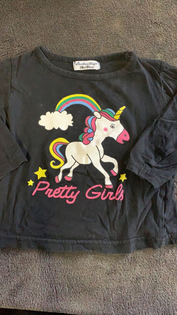 tee shirt noir licorne taille 18 mois marque barbouillage tres bon état. #ggilloisrenon_fille_18mois code rangement 228